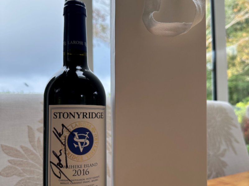 We are proud to auction a bottle of the acclaimed Stoneridge 2016, a sophisticated blend of Cabernet Sauvignon, Petit Verdot, Merlot, Cabernet Franc, and Malbec.